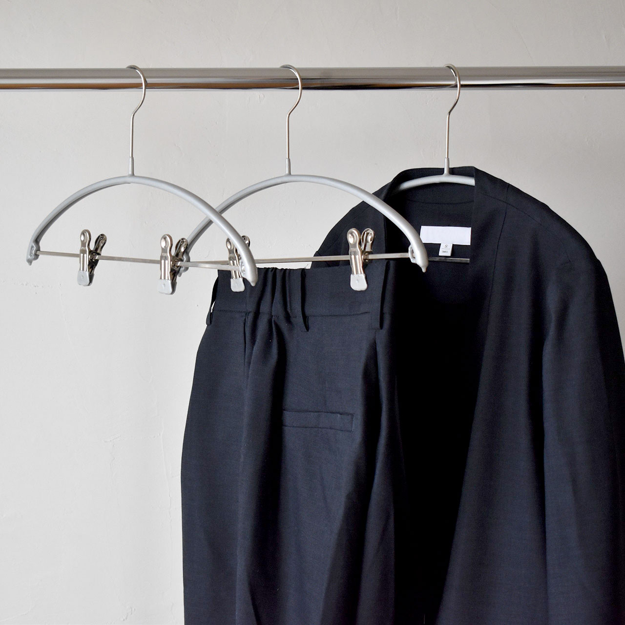 クリップ付きで上下セットでかけられるハンガーは他に、シルエットクリップ45 や、ボディーフォームクリップ42 がおすすめです。