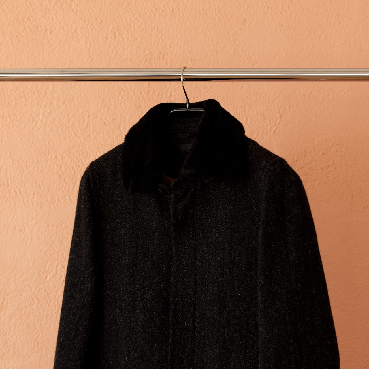 ボディーフォームバー46はスーツなどのセットアップにぴったりです。下部のバーを含む全体にコーティングが施されているのでジャケットとパンツなどを同時に掛けられて滑り落ちません。