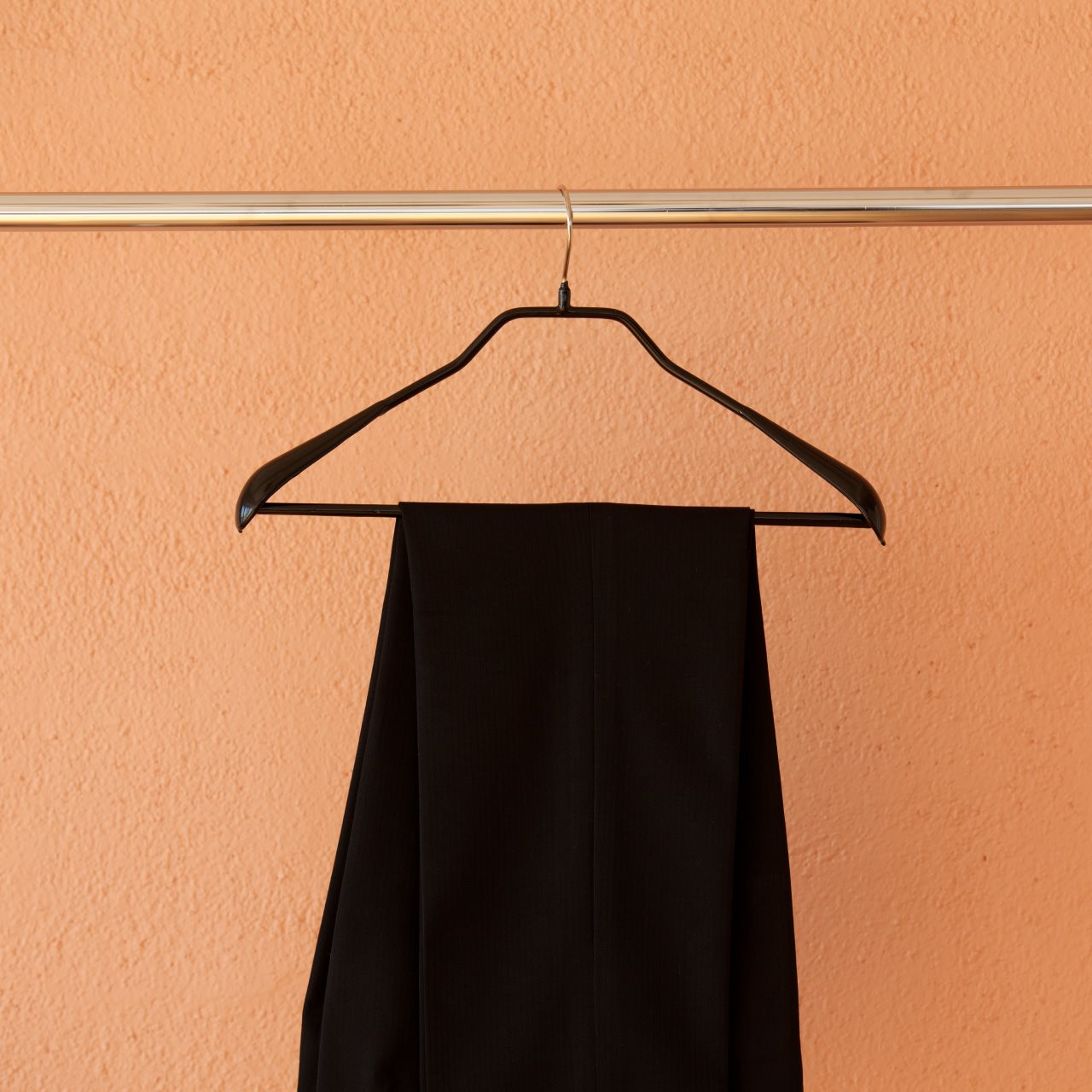 ボディーフォームバー42はスーツなどのセットアップにぴったりです。下部のバーを含む全体にコーティングが施されているのでジャケットとパンツなどを同時に掛けられて滑り落ちません。上下をセットごとに収納するのにとても便利です。