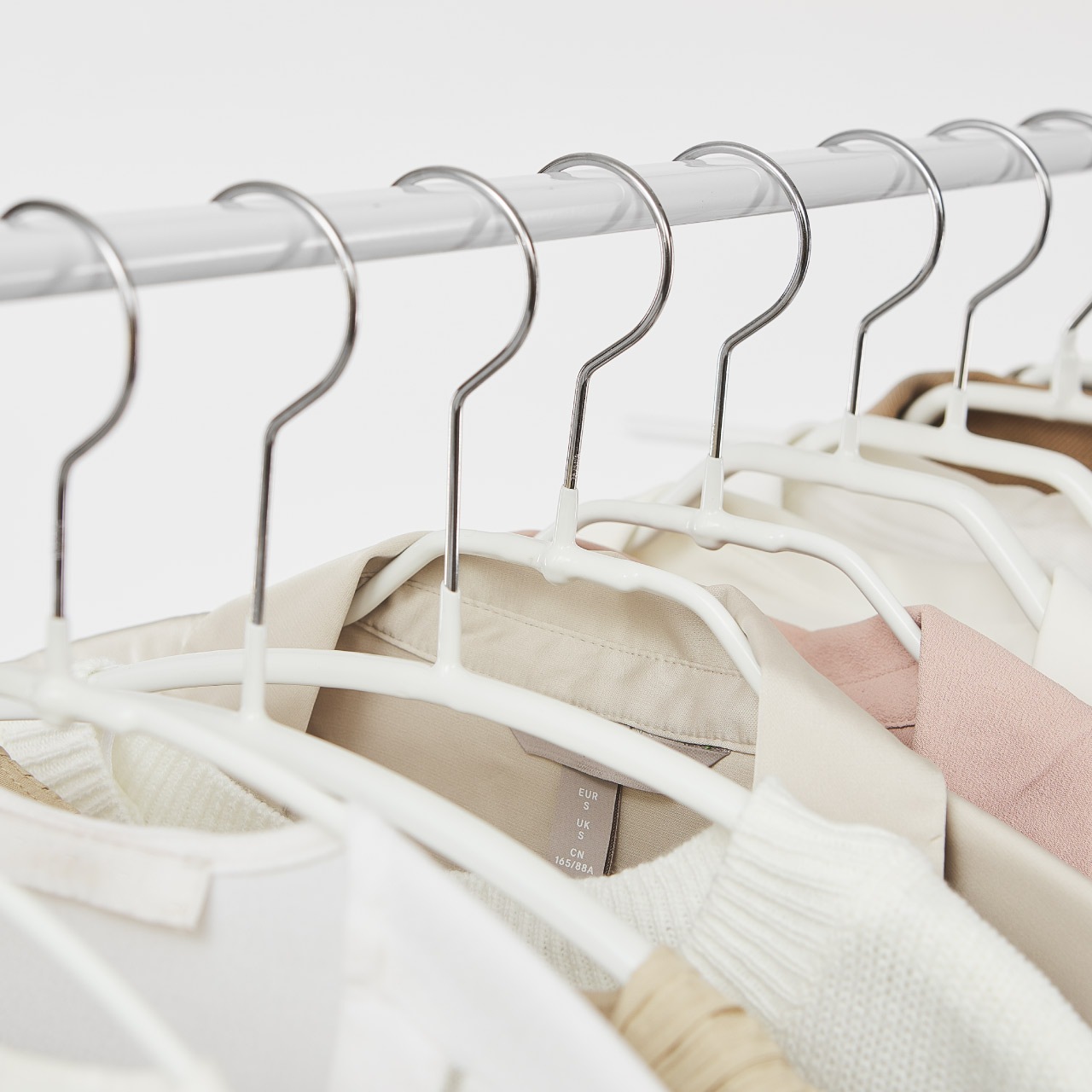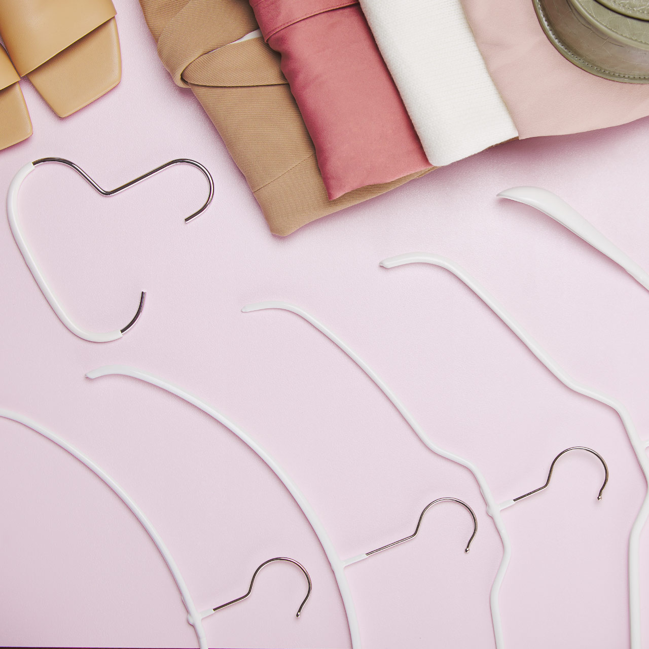 女性用のデリケートな衣装でも特殊コーティングによってすべらないマワハンガーなら型崩れから守ってくれます。収納しづらい小物やアクセサリー類もすっきりと収納できるようなハンガーをチョイスしています。
