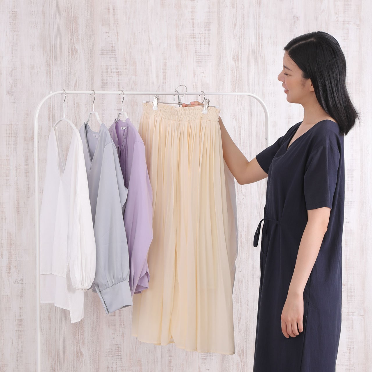 女性用のデリケートな衣装でも特殊コーティングによってすべらないマワハンガーなら型崩れから守ってくれます。収納しづらい小物やアクセサリー類もすっきりと収納できるようなハンガーをチョイスしています。
